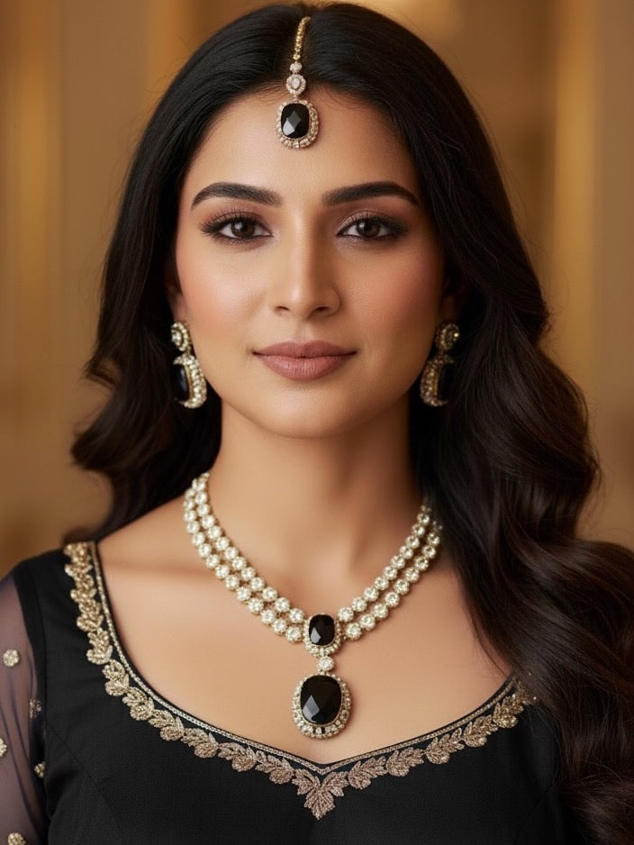 Doublet Stone Handcrafted Double line Necklace Set ✨