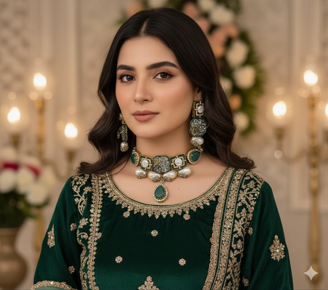 Mother Pearl With Turkish and Doublet Stone Chokar Set
